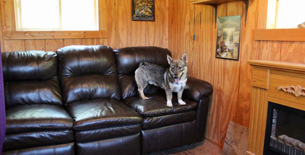 We walked back to the cabin after retrieving the game camera and gave the dogs fresh water. Andy took Lenka into the cabin with him and I walked down the lane towards the gate with the three Vallhunds. We walked the old logging road to the area of our property that crosses the adjoining North Fork Maquoketa River. Prins went straight into the water, which is just a few inches deep in most places. There are a few pools that are up to a few feet deep but just one in that area. Celine was on a leash since she reached her maximum capacity for recalls before we started down the lane. I was wearing sport sandals and walked into the river, which has a nice rocky bottom. The cool clean water felt so refreshing in contrast to the 80 degree air temperature. Celine followed without a fuss, even swimming in a few spots where her short legs didn't reach the bottom. Prins is a total water baby, freely swimming and splashing and having a blast. Dove is the exact opposite. She pouted and whined from a few feet away on shore. She got her toes wet a few times, then bolted back onto shore and rolled in the tall grasses as if her feet were on fire. Here I thought that Celine was the only drama queen in our family! Andy joined us after a half hour, driving my 4Runner down the hill with Lenka, who is still recovering from her CCL surgery in late April. It's hard for me to accept that Lenka was a small puppy when we acquired Skycastle, and now she is ten years old. The years pass too quickly. The little rascal who always stole my gardening gloves when I wasn't watching now has a gray muzzle.